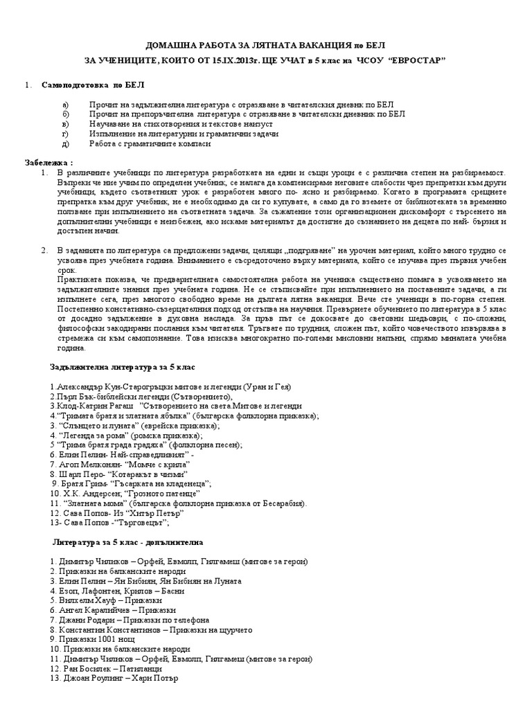 Zadlzhitelna Literatura Za V Klas Za Uchebnata 2018 2019 Godina Su Hristo Botev Gr Vraca
